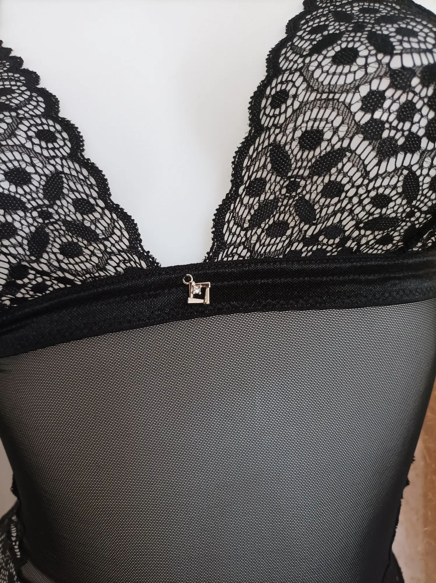 Ce body est la pièce au caractère affirmé qui met en valeur absolument toutes les courbes. Son jeu de transparence et ses motifs géométriques dessinent une silhouette résolument moderne et féminine.